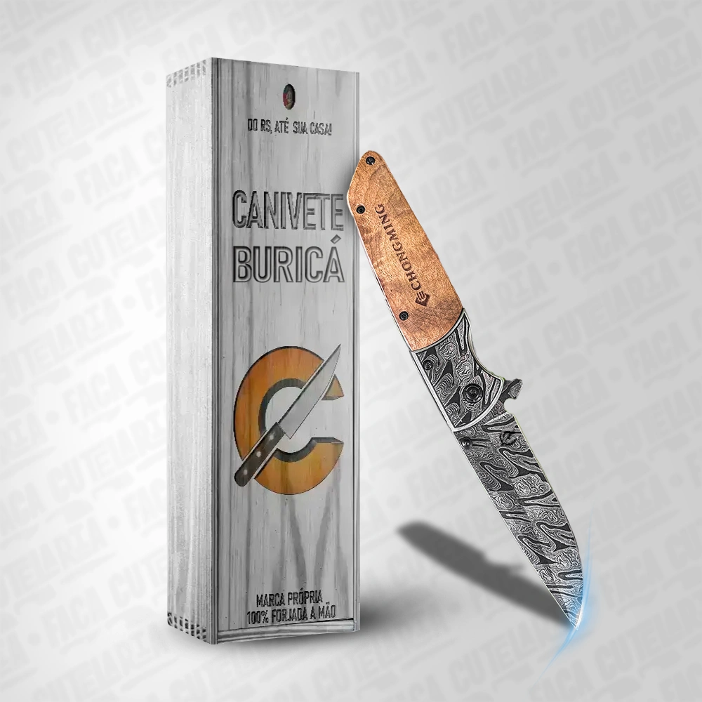 Canivete Buricá Estilo Damasco – Aço Inox 420 Cutelaria + Garantia