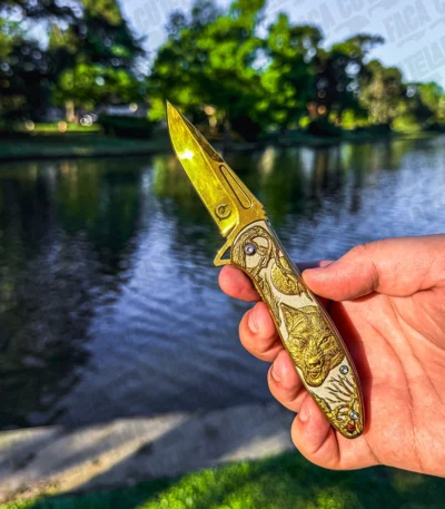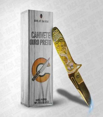 Canivete Ouro Preto Dourado – Aço Inox 420 Alto Relevo Cutelaria + Garantia