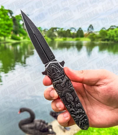 Canivete Templários Medieval – Aço Inox 420 Alto Relevo Cutelaria + Garantia
