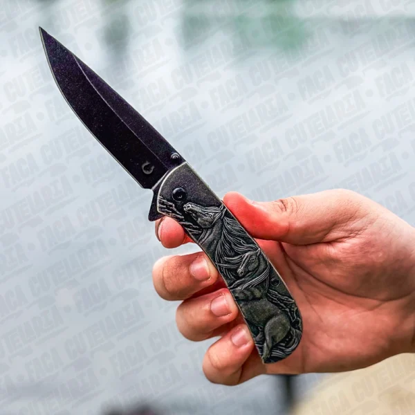 Canivete Pangaré Rural – Aço Inox 420 Preto Alto Relevo Cutelaria + Garantia