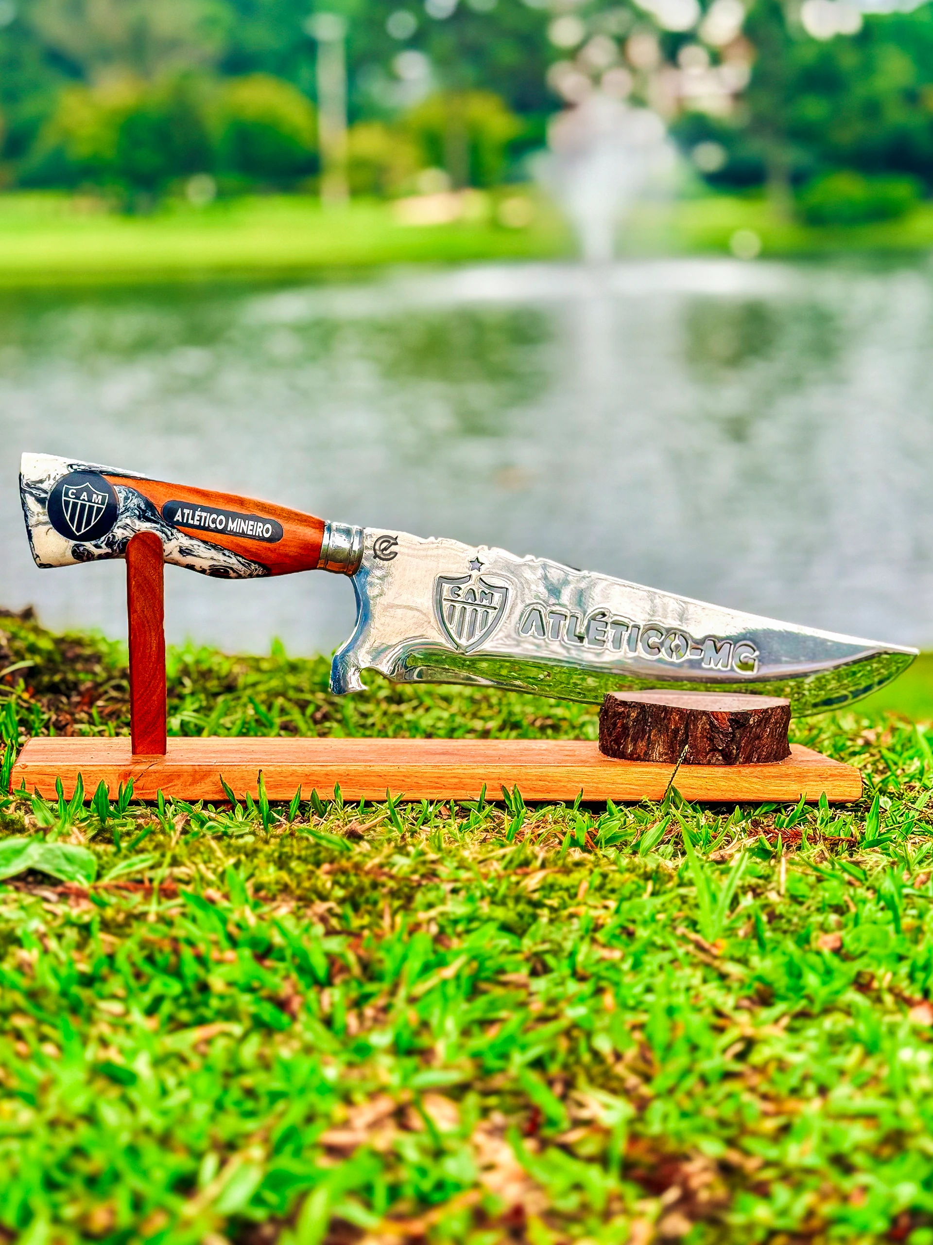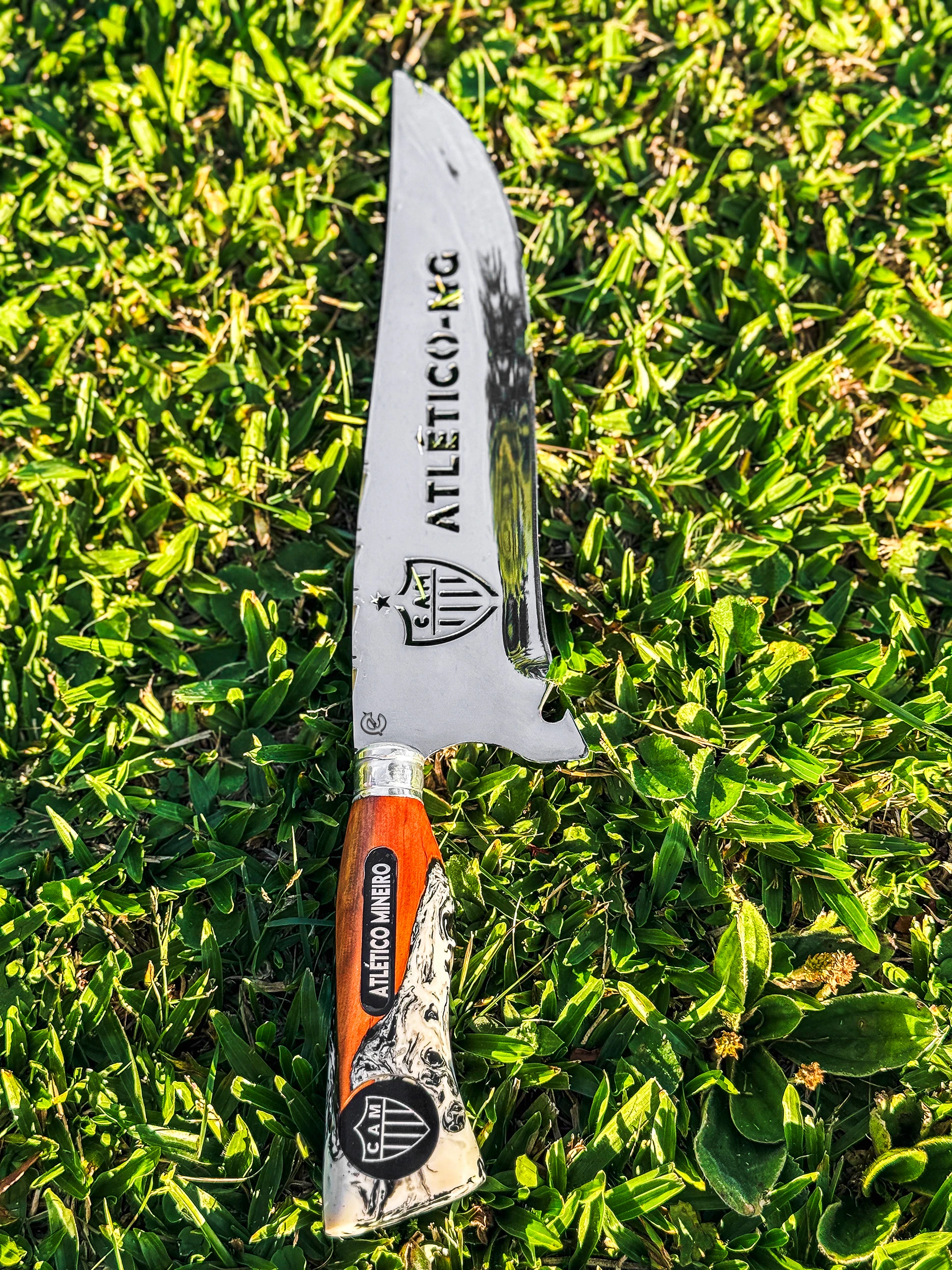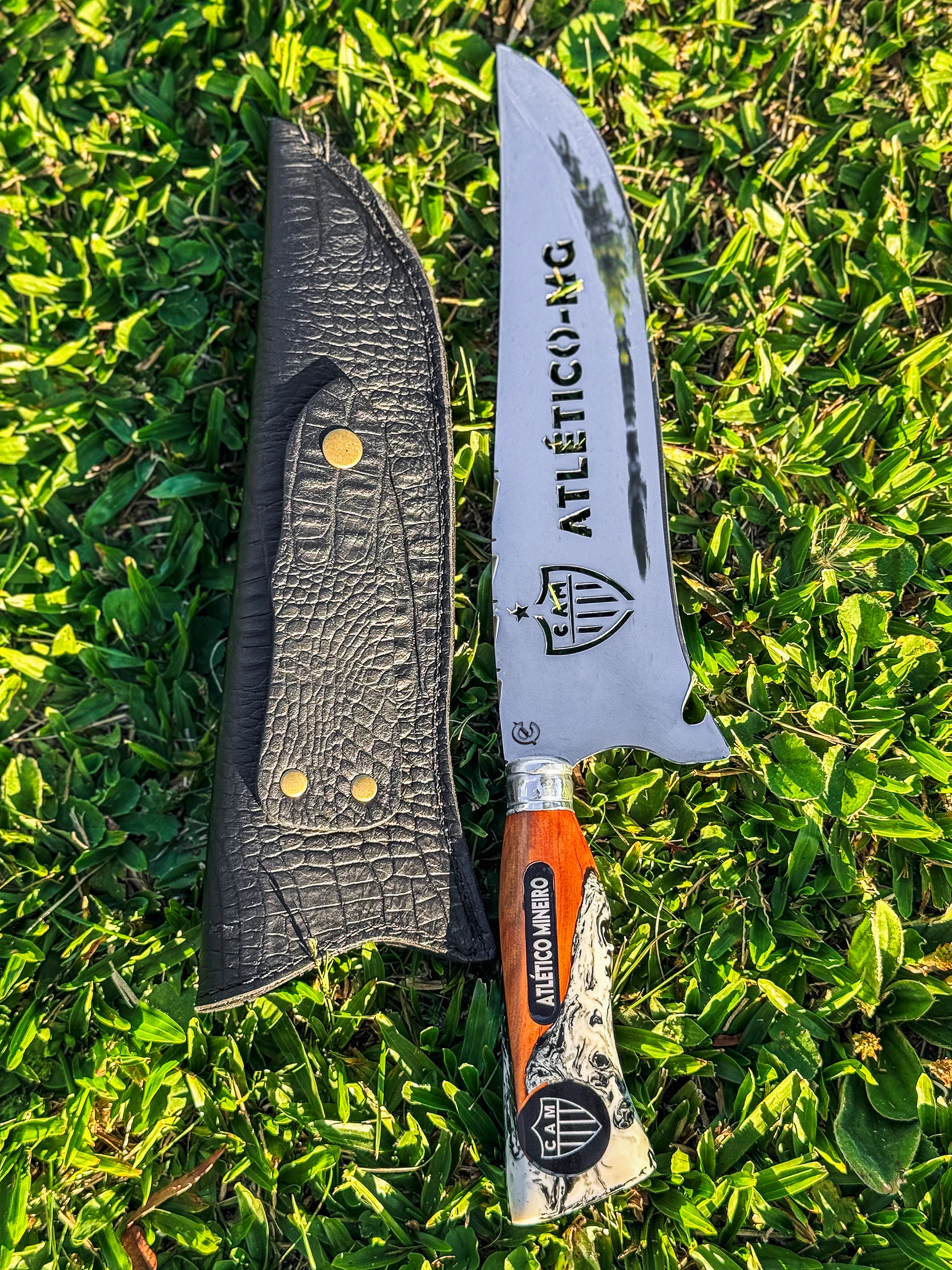 Faca resistente e funcional, ideal para churrasco, camping, pesca e atividades outdoor. Produzida artesanalmente, cada peça carrega personalidade única e acabamento diferenciado, garantindo não só desempenho no corte, mas também um visual marcante para quem carrega seu time no dia a dia.