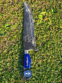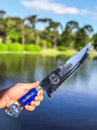 Faca resistente e funcional, ideal para churrasco, camping, pesca e atividades outdoor. Produzida artesanalmente, cada peça carrega personalidade única e acabamento diferenciado, garantindo não só desempenho no corte, mas também um visual marcante para quem carrega seu time no dia a dia.