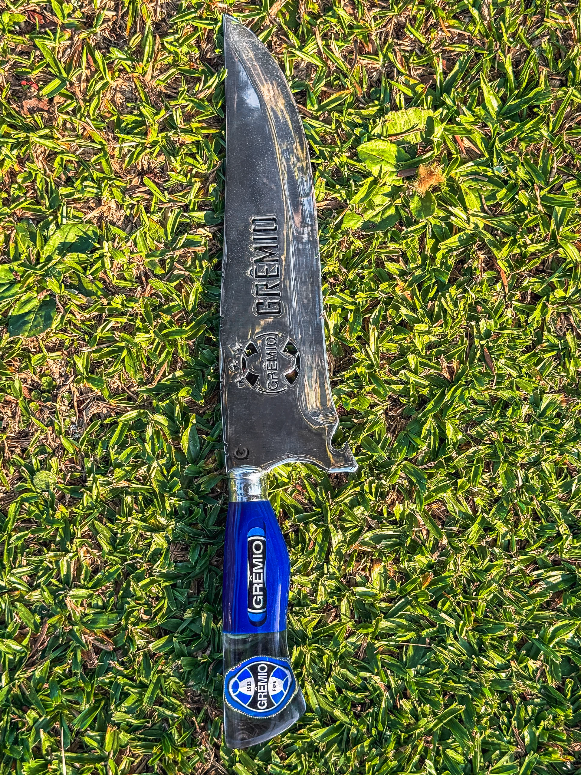 Mais do que uma faca, é um item de coleção e identidade, perfeita para presentear ou levar para o churrasco e representar seu time com respeito.