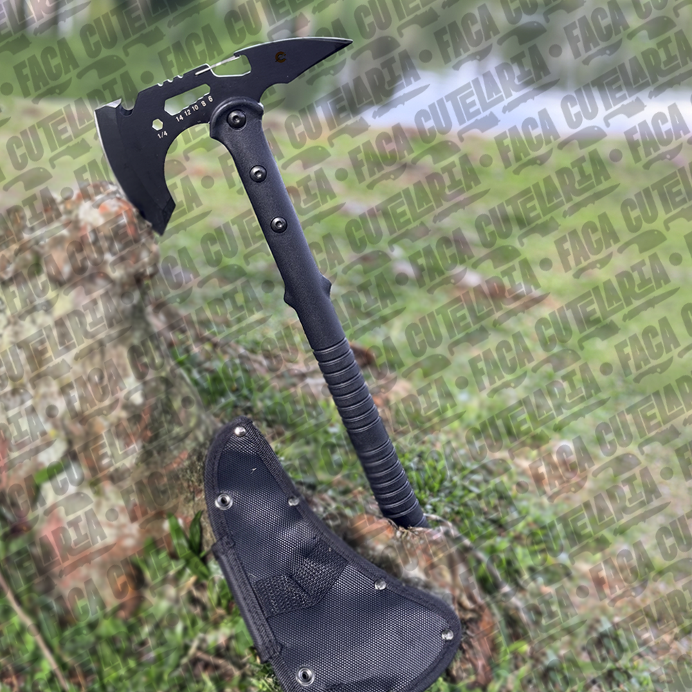 Machadinha resistente e funcional, ideal para camping, pesca e atividades outdoor. Seu design proporciona firmeza no manuseio e eficiência no corte, enquanto a lâmina afiada garante praticidade e ótimo desempenho em diversas situações.